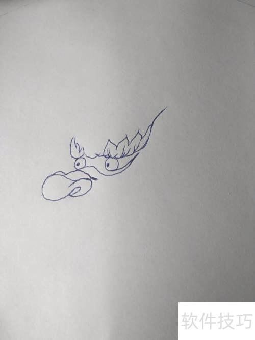 10、 接着绘制龙嘴及一侧龙须,龙须应流畅飘逸,长度不限,末端收为细线,整体由粗渐细。