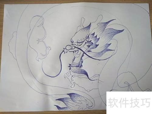 12、 随后勾勒出龙的身躯形态