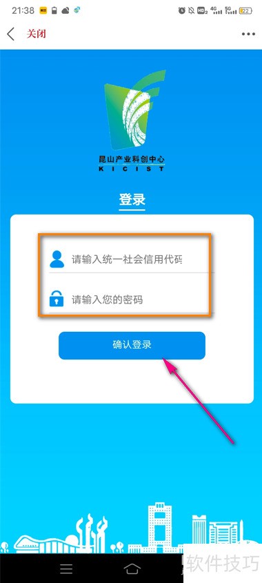 4、 输入信用代码与账户密码,点击确认即可登录。