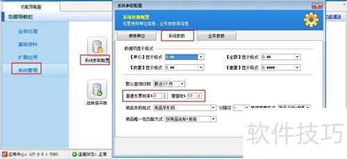 1、 在功能导航栏中依次选择系统管理、系统参数配置和系统参数。进入参数设置页面后,可分别将普通发票税率设为3%,增值税发票税率设为13%。配置完成后,点击保存按钮,确认并存储相关设置,具体操作所示。