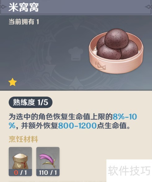 3、 食谱三为米窝窝,可在璃月万民堂花费1125摩拉购得,所需材料为马尾和面粉各一份。