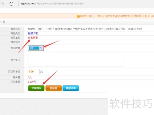 5、 选数量,提卡密,马上购买