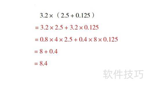 5、 3.2乘以括号内2.5加0.125的和,最终结果为8.4。