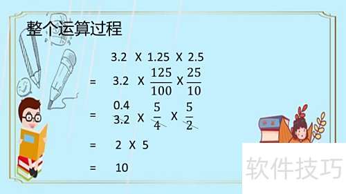 如何简便计算3.2×1.25×2.5?可将1.25和2.5化为分数,结合3.2拆分重组,利用乘法结合律简化运算,提升计算效率。