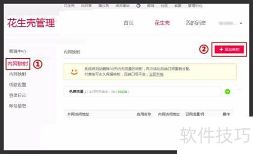 5、 进入内网映射页面,点击添加,即可弹出新建映射的窗口。
