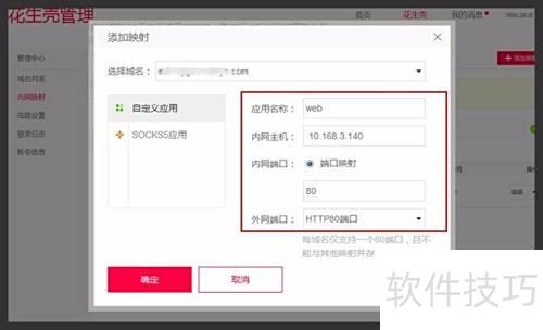 6、 在弹出窗口中填写映射信息,确认无误后点击确定按钮。