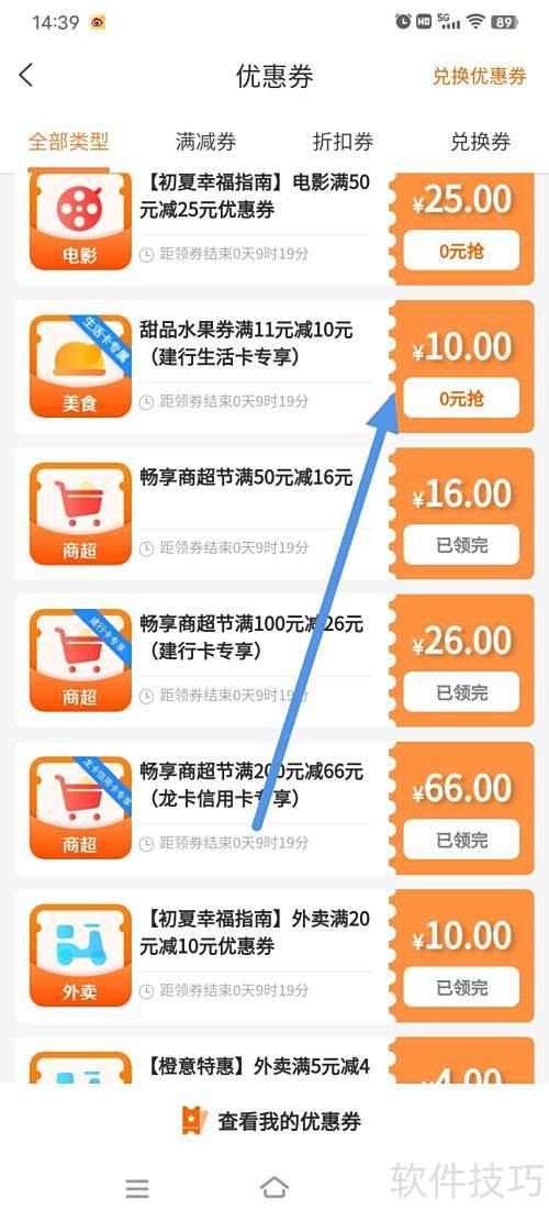 3、 挑选所需优惠券,点击领取即可使用。