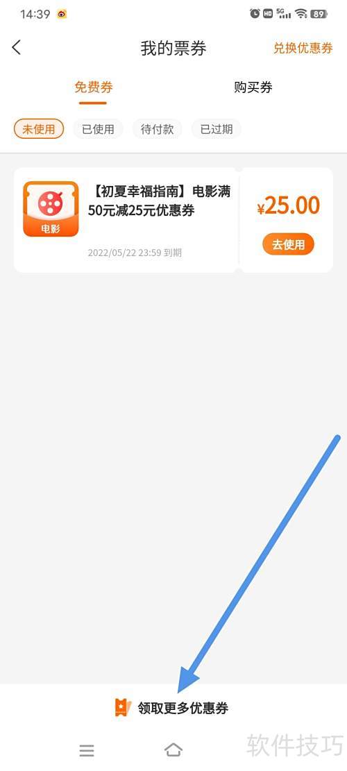 2、 点击领取更多优惠券。