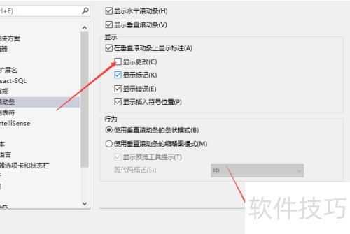 5、 进入滚动条界面,取消勾选显示更改选项。