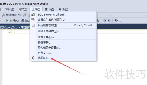 2、 在SQL Server Management Studio中,点击顶部菜单栏的工具选项。