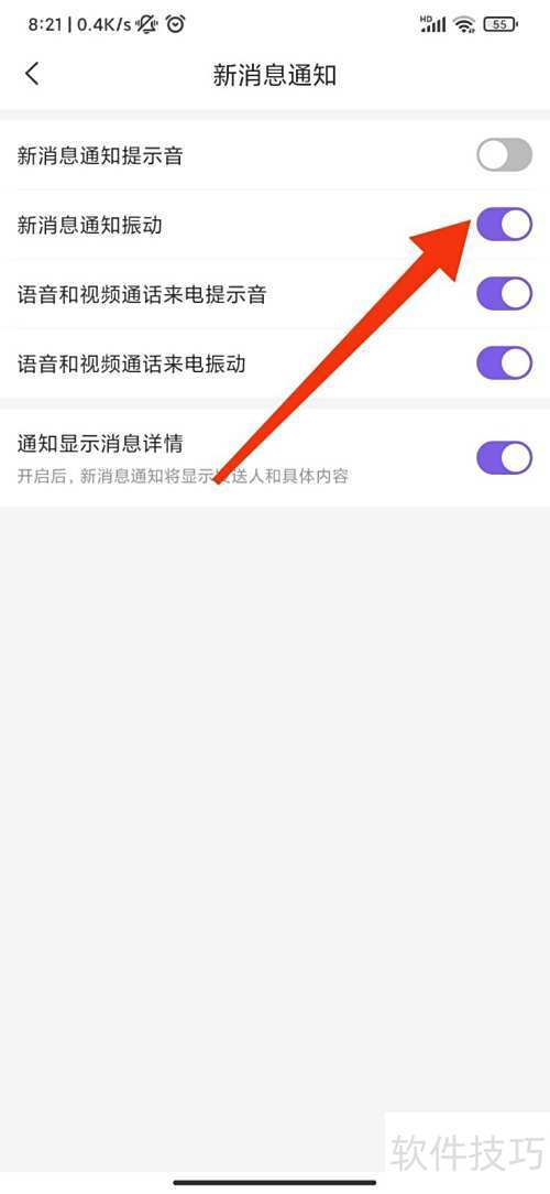 4、 开启新消息通知震动功能。