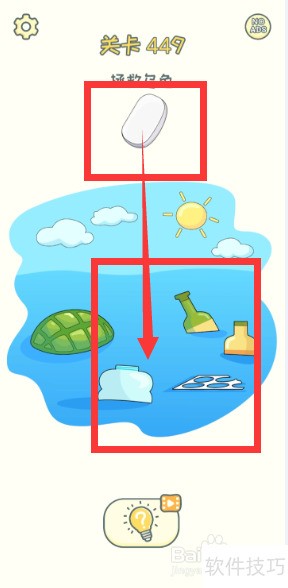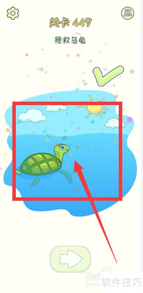 3、 清除垃圾后乌龟获救,顺利通过关卡。