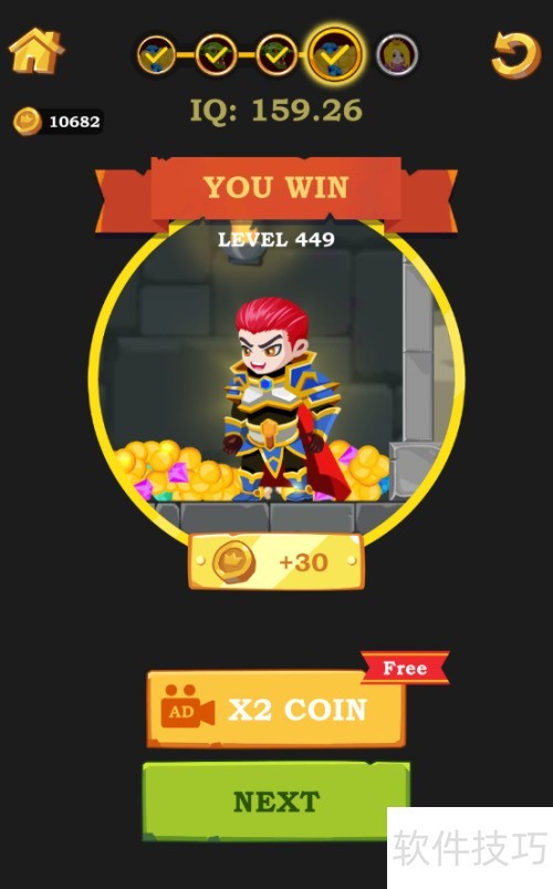 8、 少年寻得宝藏,屏幕显示YOU WIN,顺利通关。