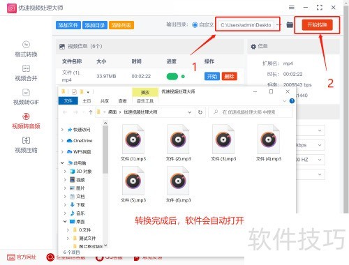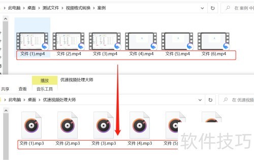 4、 第四步,通过实际案例结果可见,软件已顺利将多个视频文件转换为MP3音频格式,实现视频到音频的高效转换。
