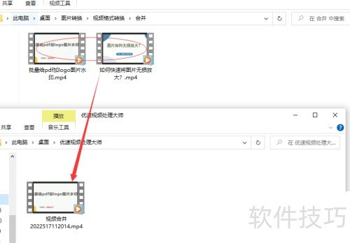 4、 第四步,从上述案例结果可见,软件已顺利将两个视频合并为一个。