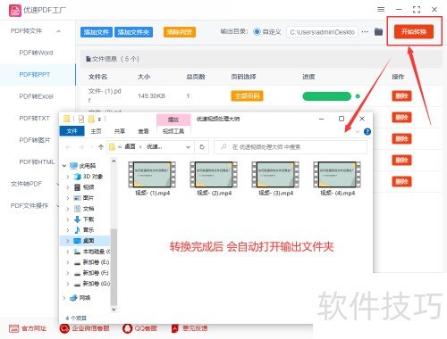 3、 完成设置后,点击右上角红色按钮开始转换格式。待所有WMV视频转换完毕,系统将自动打开输出文件夹,转换后的MP4视频已全部保存在其中,方便查看和使用。