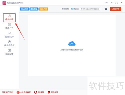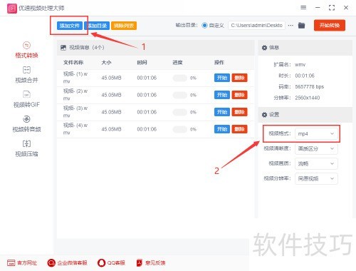1、 首先启动电脑,运行优速视频处理大师2.0.2.1,进入软件后选择顶部的功能,该功能支持二十多种视频格式转换,涵盖常见的wmv、mp4等格式,操作简便,转换高效。