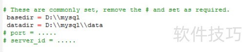 5、 在MySQL安装目录中创建一个名为data的文件夹。复制my-default.ini文件并重命名为my.ini。编辑该文件,将basedir设置为D:mysql,datadir设置为D:mysqldata,确保这两项前的注释符号已移除,保存修改后的配置文件,完成初始化目录与路径配置。