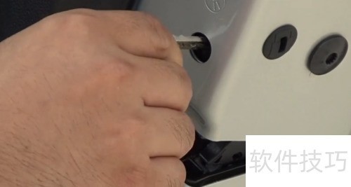 1、 打开车辆右后门,手指处即为儿童锁的锁孔位置。