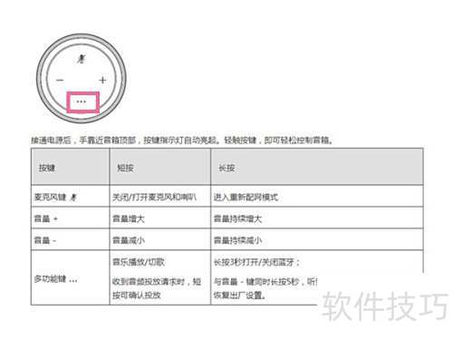 3、 在未联网时,长按音箱顶部三点键可开启蓝牙,音箱将语音提示蓝牙已连接。