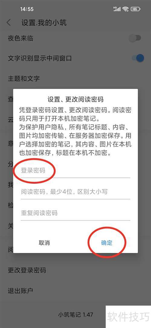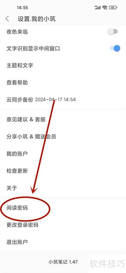 小筑笔记App阅读密码设置方法:进入设置,选择安全选项,开启密码保护并设置密码。