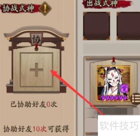 5、 在图示位置添加好友式神,之后战斗中即可使用该式神。