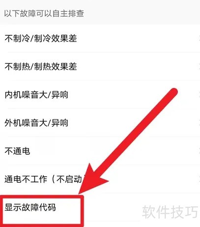 2、 进入空调故障页面后,点击下方显示故障代码的选项。