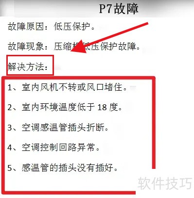 3、 在跳转后的页面中可找到格力P7故障的处理方案。