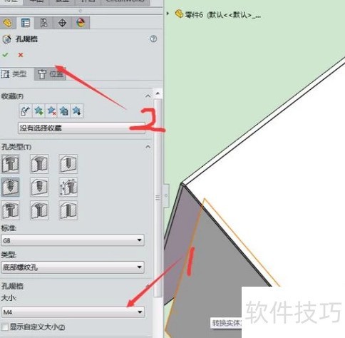 1、 打开需固定的零件,选用异型孔向导功能。