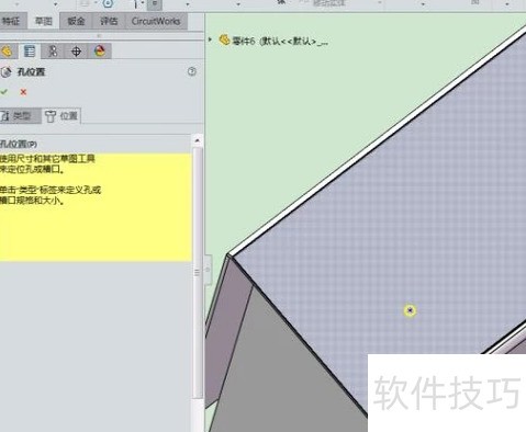 3、 选取一个平面进行打孔,点击指定孔位,可通过尺寸与约束精确定位。
