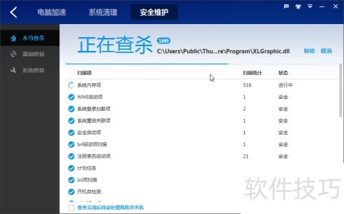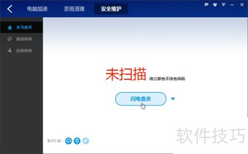 2、 进入木马查杀界面,选择闪电查杀功能进行扫描。