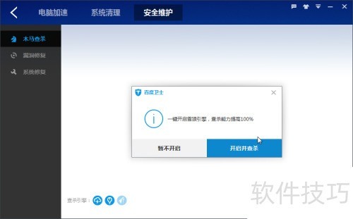 3、 将提示是否启用雪狼引擎,选择启用并扫描即可。