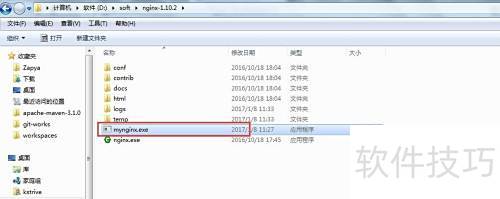 4、 解压下载的 nginx-1.10.2.zip 文件,获得名为 nginx-1.10.2 的文件夹。将 WinSW.NET4.exe 复制一份到该文件夹内,并将其重命名为 mynginx.exe,名称可根据个人喜好进行修改。