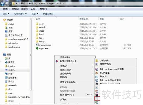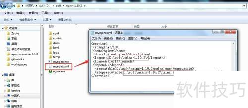 5、 在 nginx-1.10.2 目录中创建一个新文本文件,将其命名为 mynginx.xml,确保文件名与之前重命名的可执行文件 mynginx.exe 保持一致。随后编辑该 XML 文件,填入指定内容。