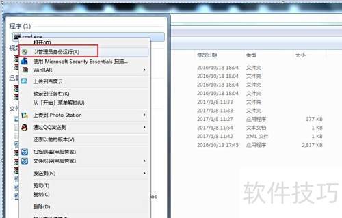 7、 在开始菜单中搜索cmd,定位到cmd.exe文件,右键选择以管理员身份运行,启动具有管理员权限的命令行界面。随后通过cd命令进入nginx-1.10.2所在目录,在窗口中输入mynginx.exe install并按下回车执行,若显示服务安装成功,即表示操作完成,示结果所示。