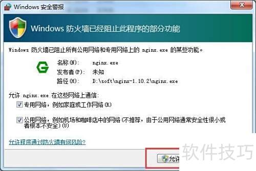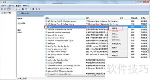 8、 在开始菜单中输入 services.msc,打开服务管理窗口。在服务列表中找到 Nginx 服务,右键点击该服务,选择启动选项。若系统弹出安全提示窗口,点击允许继续操作,随后等待服务完成启动过程即可。