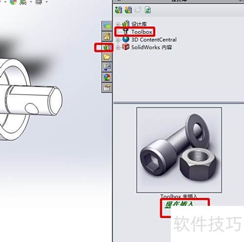 2、 所示,进入设计库,选择Toolbox并点击插入即可。