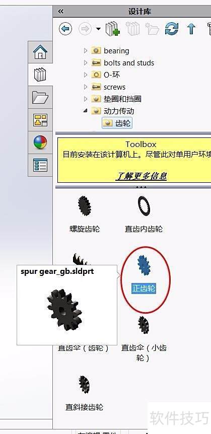 SolidWorks内置Toolbox插件,可直接调用标准件库快速生成符合规范的零件模型。