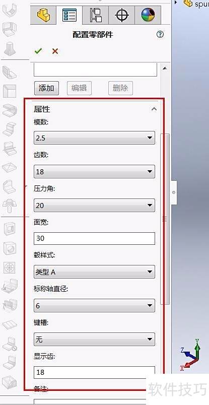 7、 自动生成一个匹配的齿轮,还可进一步进行拉伸、切除等操作编辑。