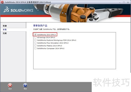 4、 使用原始安装包中的setup程序进行修复操作,仅选择修复SolidWorks组件。注意必须是最初安装时的完整安装包,而非软件安装后目录内的文件,避免混淆导致错误。