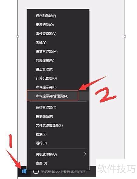 5、 右键点击左下角开始按钮,选择以管理员身份运行命令提示符,确认提示后点击是。