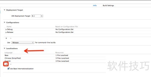 1、 打开工程文件后,进入工程设置界面,点击加号按钮,选择需要添加的语言,此处以简体中文为例。系统提示storyboard已关联后,点击完成,所选语言便会自动出现在语言列表中,添加过程简单快捷,无需额外配置,即可在项目中启用新语言支持。