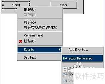 9、 在Event菜单中,找到actionPerformed事件,单击该事件即可触发相应操作。