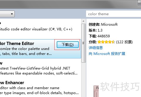 4、 找到Visual Studio Color Theme Editor选项,点击右侧的下载按钮即可开始下载。