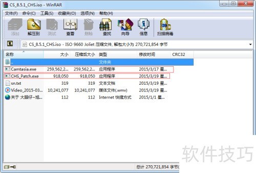 4、 用WinRAR打开后可见两个文件框,上方为cs应用程序,下方为汉化插件。安装时需先装应用程序再装插件,问题正出在这个顺序上。