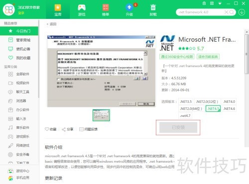 9、 突然想到,既然无法安装.NET Framework 4.0,不妨尝试更高版本。于是直接安装了.NET Framework 4.5,没想到顺利成功,问题迎刃而解,省去了不少麻烦,也避免了反复重试的困扰。