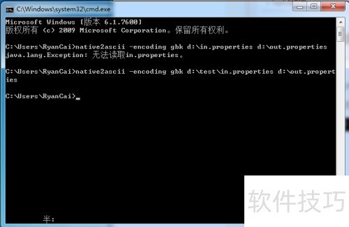 2、 打开命令提示符窗口,输入指令:native2ascii。