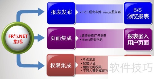 1、 FR与.NET项目集成主要包括三部分内容,所示。