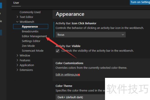 4、 进入设置界面后,选择左侧的编辑器管理选项。