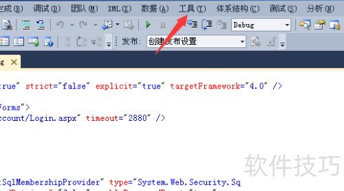1、 启动Visual Studio后,点击顶部菜单栏的工具选项,进入相关设置界面。